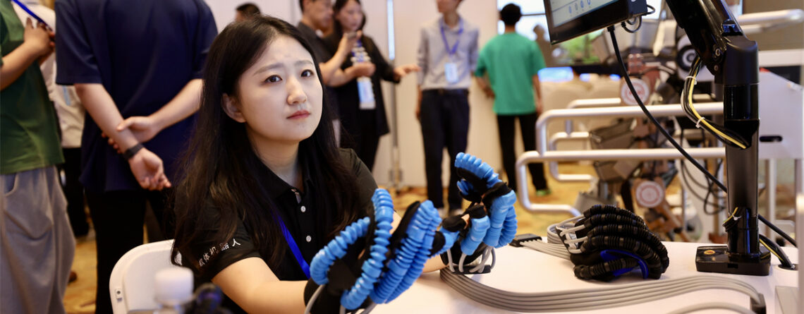 In a rehabilitation center in Beijing’s Fengtai District, the 76-year-old, once dependent on a caregiver, lifts his feet, one after the other, walking with the help of a robotic exoskeleton.