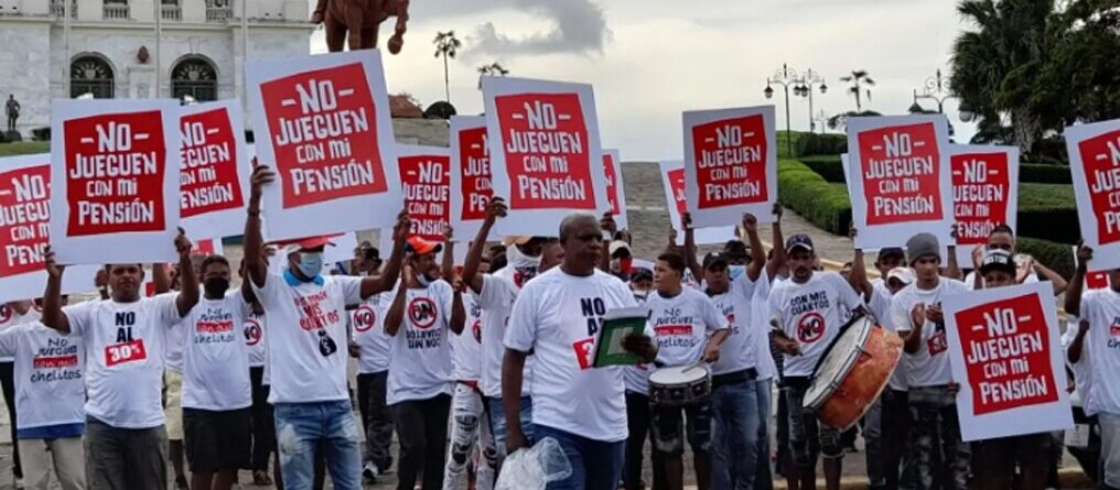 Decenas de personas, lideradas por la Central Nacional de Trabajadores Dominicanos (CNTD), protestaron por las inmediaciones del Centro de los Héroes, este miércoles, con tambores y vociferando consignas en rechazo a que sea autorizada, por ley, la entrega del 30 por ciento de los fondos de pensiones.