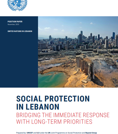 This paper serves to complement the Reform, Recovery and Reconstruction Framework (3RF)1. It draws on the findings of various assessments in the social protection sector, providing concrete recommendations for an integrated crisis response which paves the way for an effective recovery, and linking immediate and short term measures with a longer term perspective for the development of a comprehensive social protection system in Lebanon.